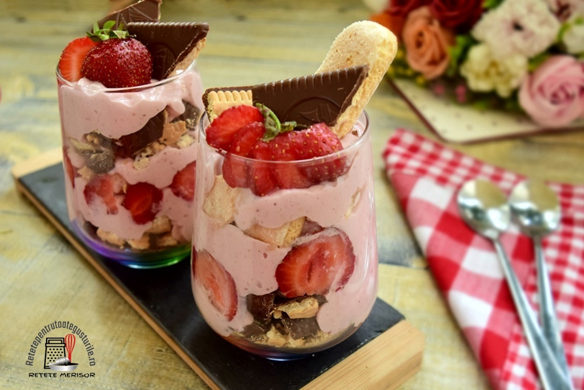 Rețetă de desert cu pișcoturi și căpșuni la pahar